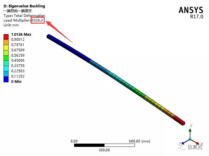 当一端自由,一端固支时,得到模拟值为8326.3N。