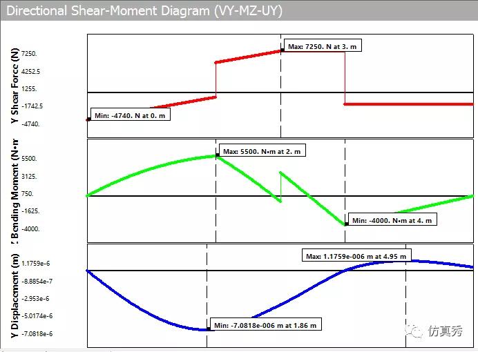 由于施加的集中力为负值,所以剪力图与理论结果反向。
