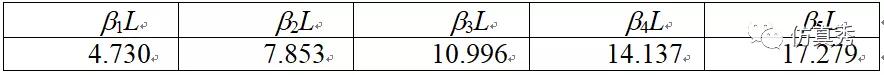 表1 固支梁的特征根值