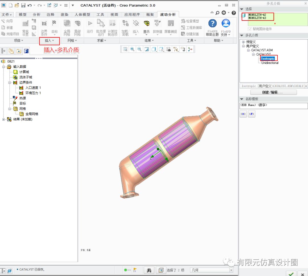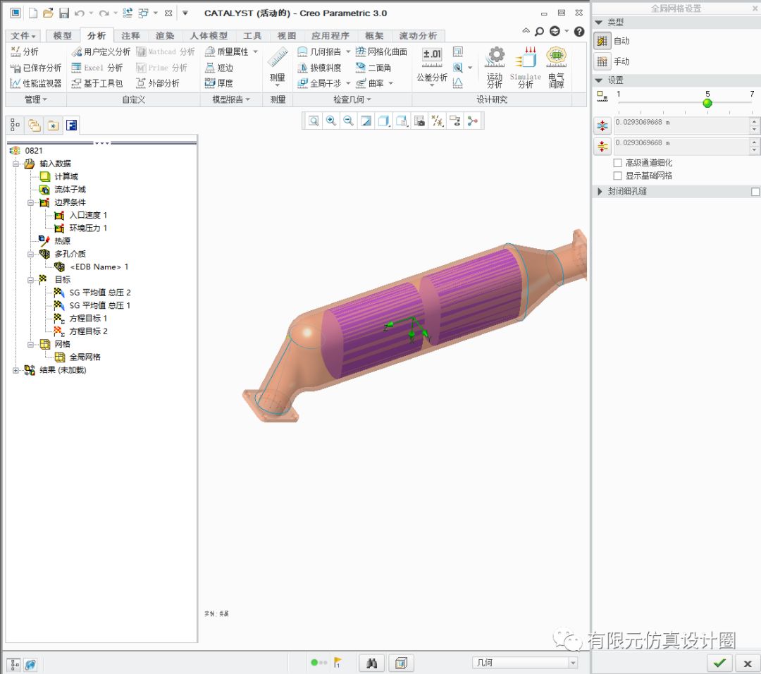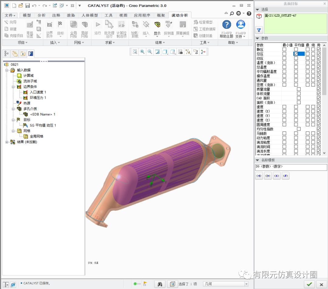 本文主要介绍了汽车排气管某一管段的流动问题,通过使用多孔催化剂,在保证与多孔催化剂接触时间的同时,尽可能减少排气的阻力。文章详细描述了模型的创建、求解计算和仿真结果,包括定义边界条件、定义目标、定义网格等步骤。最后,作者表示希望通过微 信公 众号抛砖引玉,结交更多志同道合的朋友,共同探讨仿真之路。