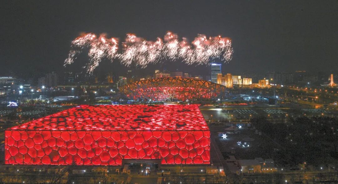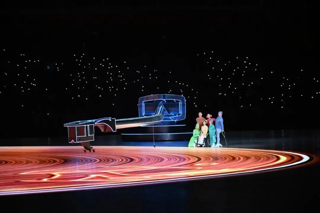 红、蓝、绿色的滑雪杖排列成“会徽”,运动员们漫步于没有隔阂与界限的“蓝色地球”,五彩斑斓共享此刻。合唱团的孩子们天籁般的声音回荡在鸟巢夜空,小女孩捧起明亮的“火种”将“希望”播撒,萤火之光点亮世界……闭幕式参演群体中,约30%为残疾人,心手相连,残健共融的人们用“爱”为世界绘就了一抹绚丽的色彩,留下永恒的温暖记忆。