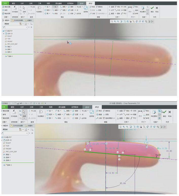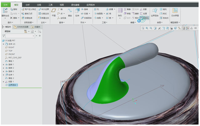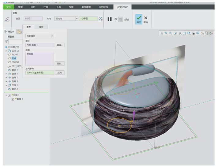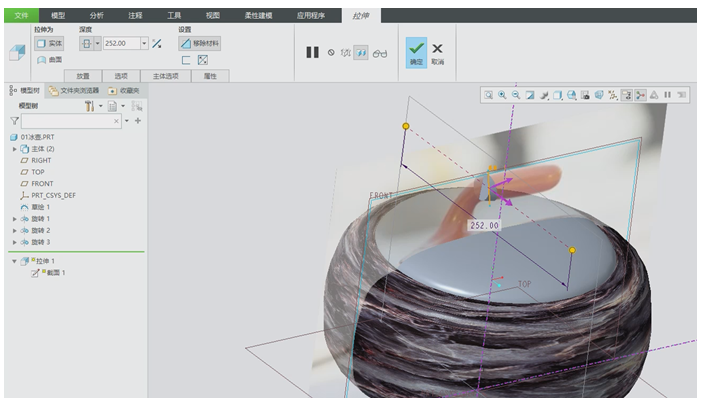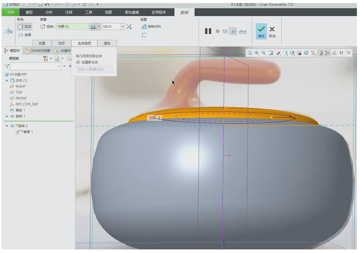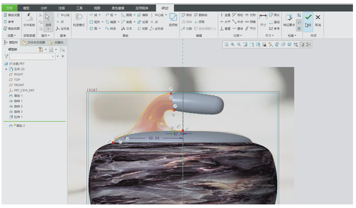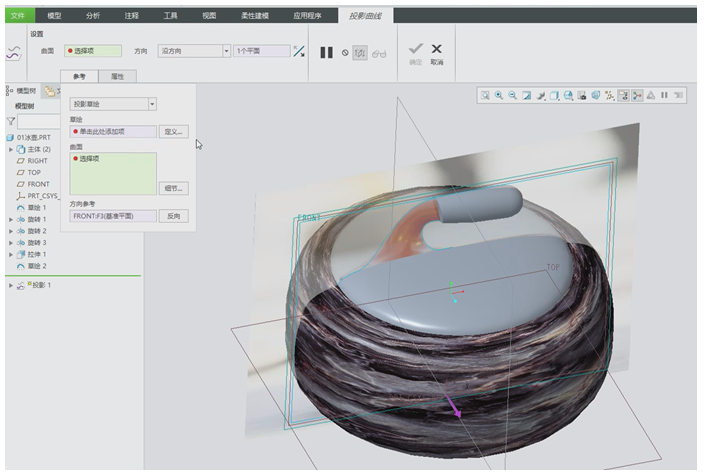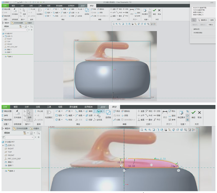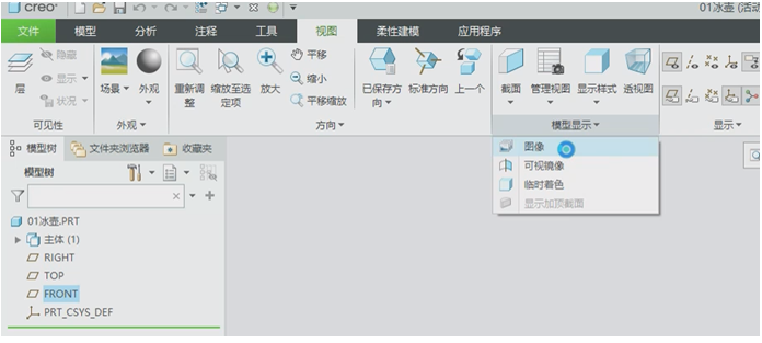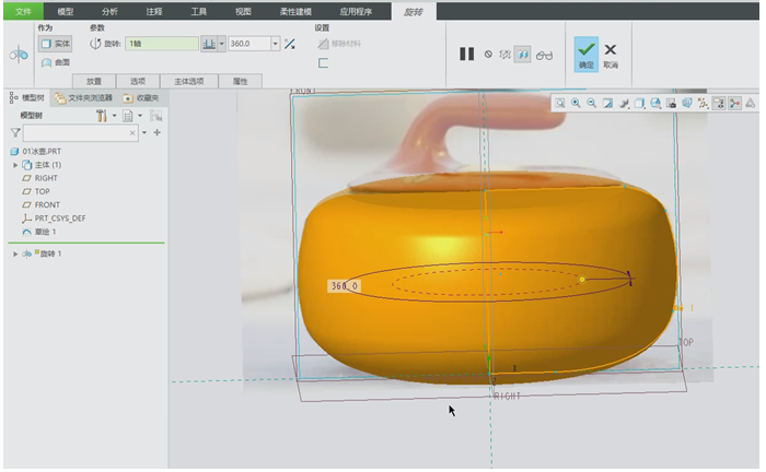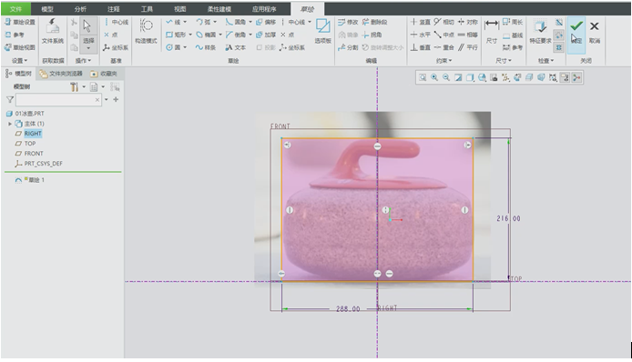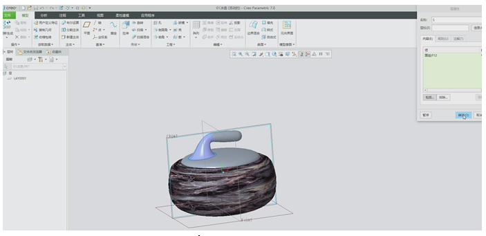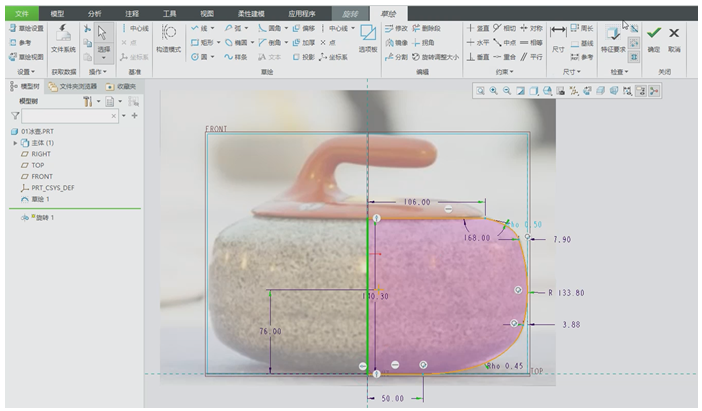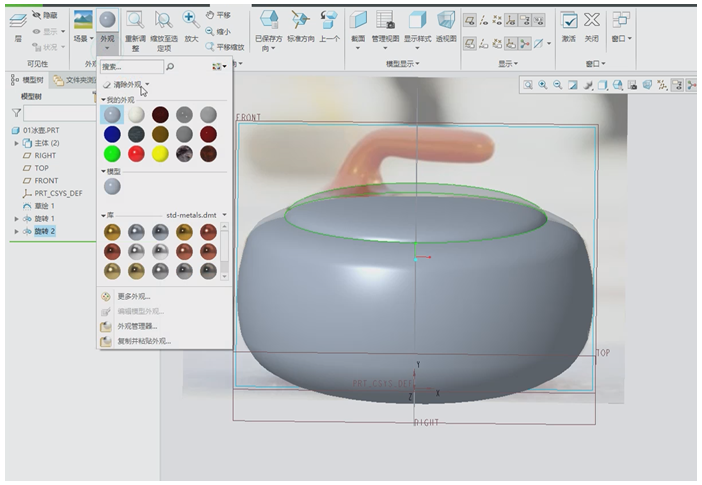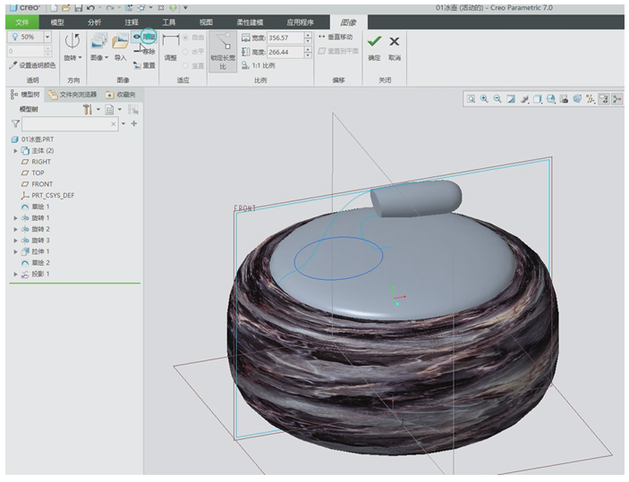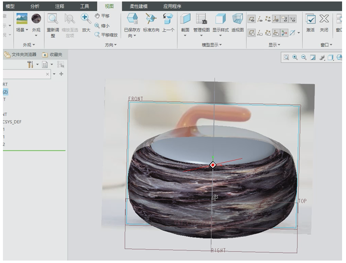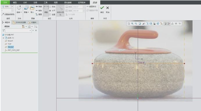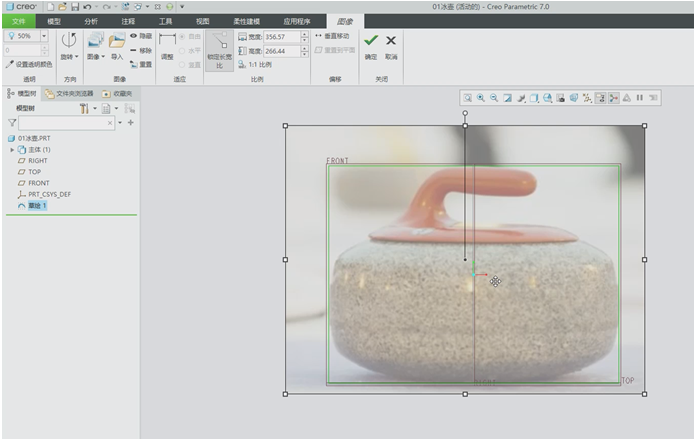选中Front前视图,利用Creo视图-模型显示-图像,进行插入冰壶图像