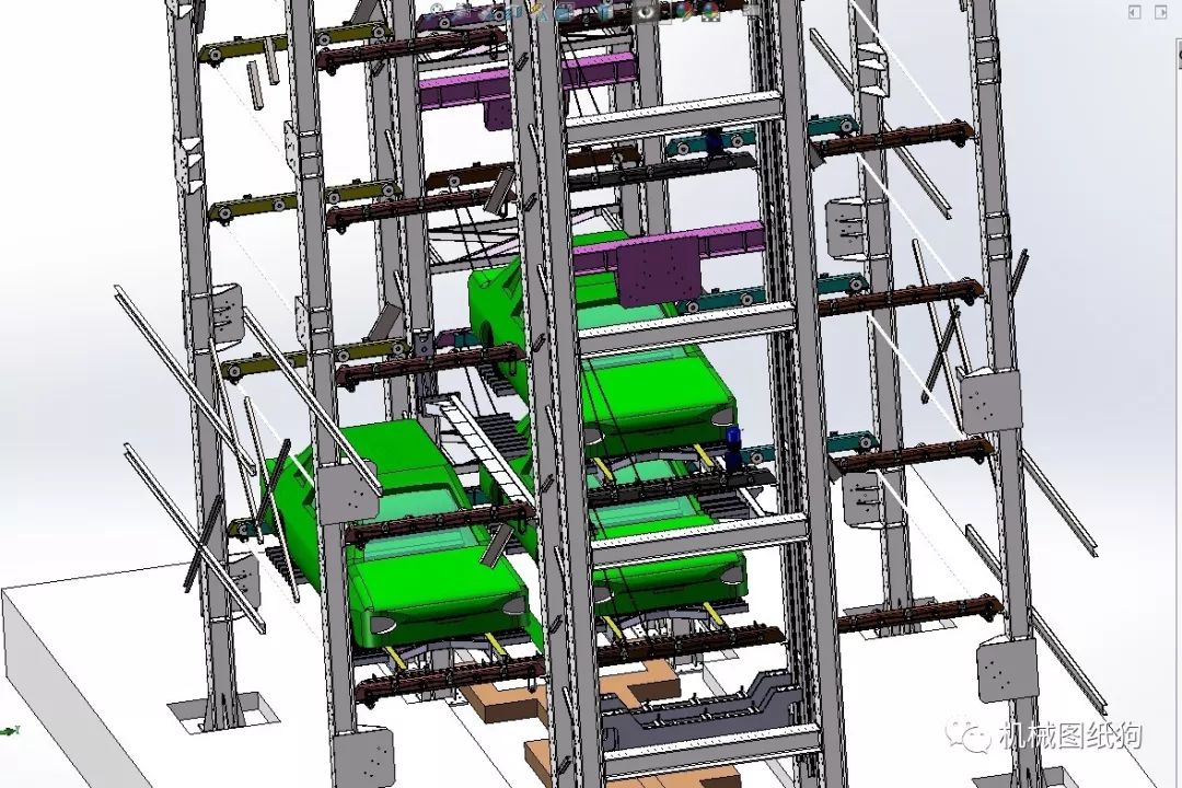 【工程机械】25层垂直升降立体车 库3D数模图纸 Solidworks设计