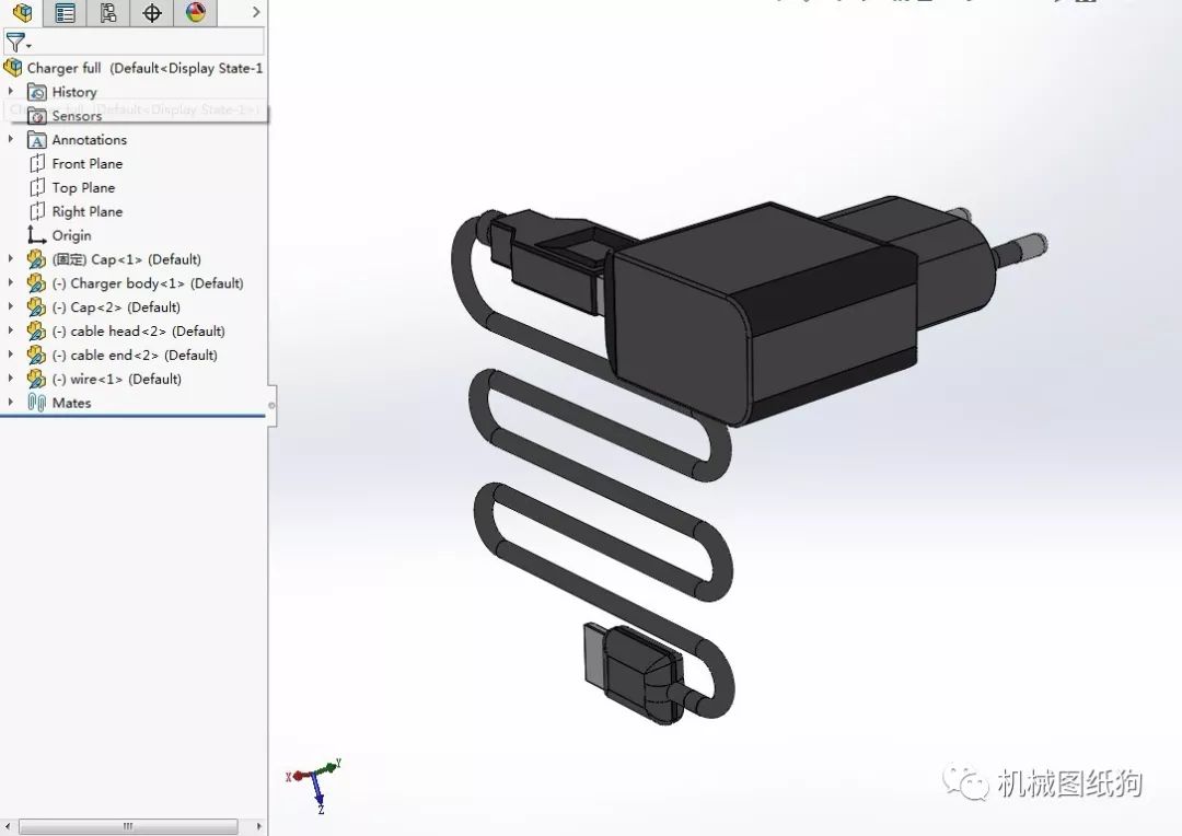 【生活艺术】简易手机充电器3D模型图纸 Solidworks设计
