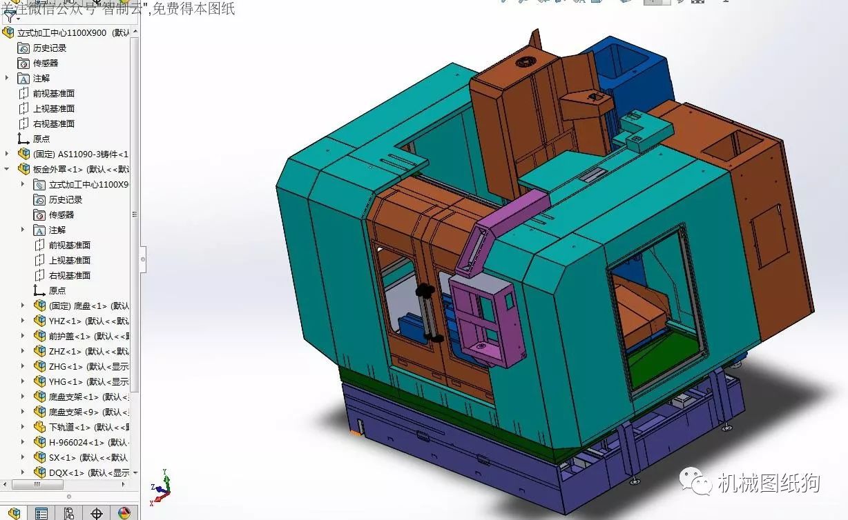 立式加工中心1100X900模型3D图纸 Solidworks设计