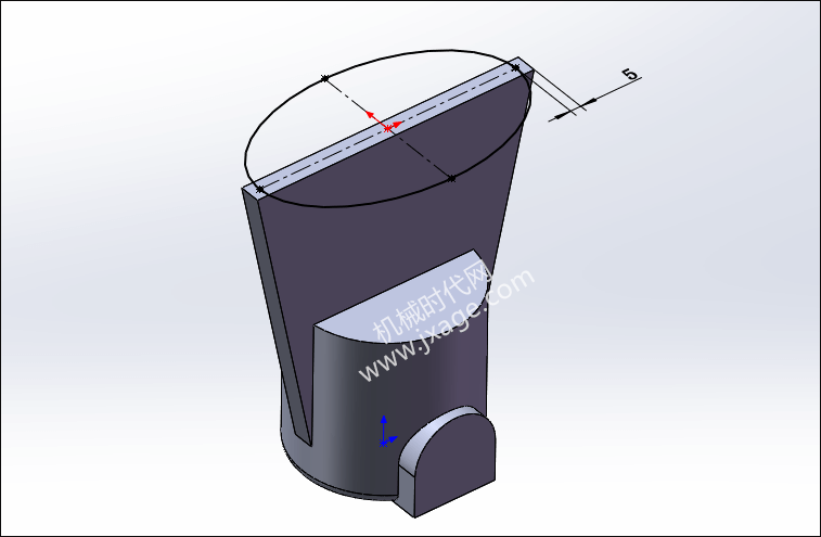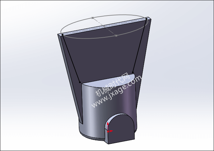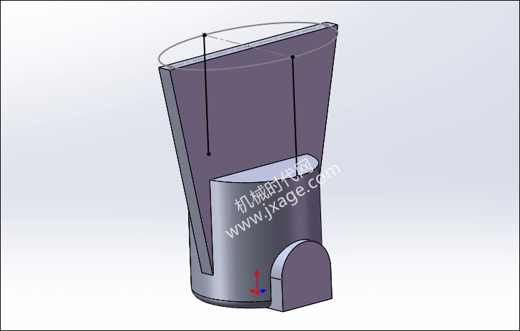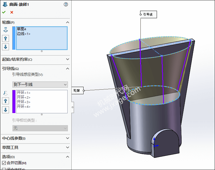 8.点击【插入】-【曲面】-【放样曲面】,选择如下图所示的椭圆和拉伸1的边作为轮廓,选择如下图所示的4条直线作为引线。