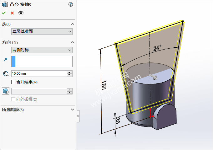 设置拉伸的深度为10mm,注意不要勾选合并结果。