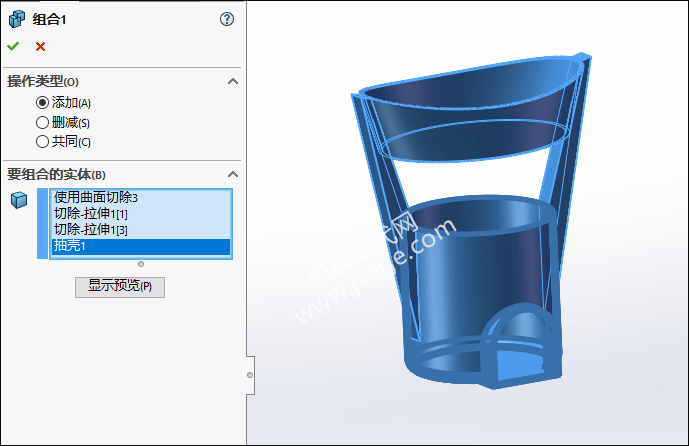 16.【插入】-【特征】-【组合】,将所有的实体进行组合。