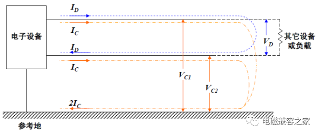 3. 器件上的电路走线与大地之间有电位差,这样电路走线上会产生共模干扰电流。