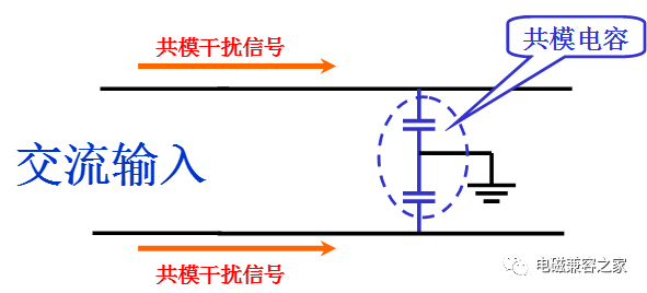 如果共模干扰源是在电源回路,可使用共模电容来抑制干扰信号。