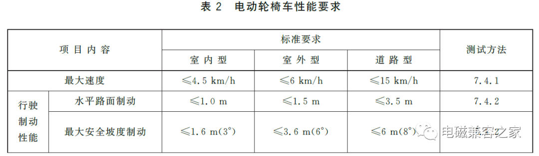 注:按照标准《GB T 12996-2012 电动轮椅车》第5.5章 性能要求规定,轮椅车最高时速不高于15km/h,如下: