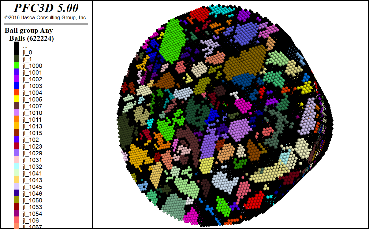 我目前已经建了一个初步的小球几何模型,将小球分成了不同的group。后续需要进行的是根据group进行clump,然后进行高温低频几个工况的伺服加载,并提取加载过程中小球相关的接触信息(包括接触数量、接触力分布、接触力大小等)